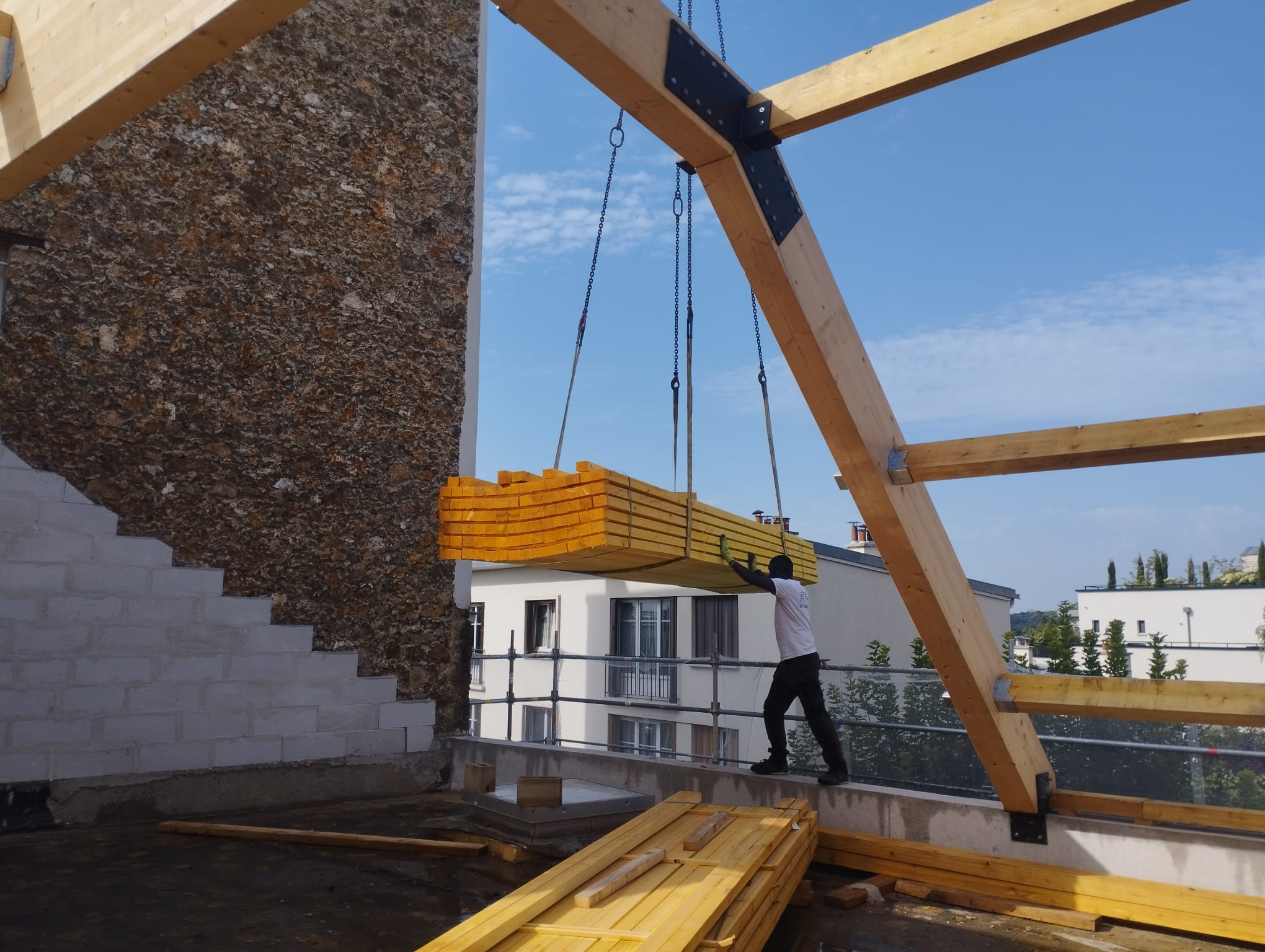 Spécialiste des travaux de couverture, notre équipe de professionnels intervient pour tous vos travaux d'extension ou de rénovation de votre charpente en bois.